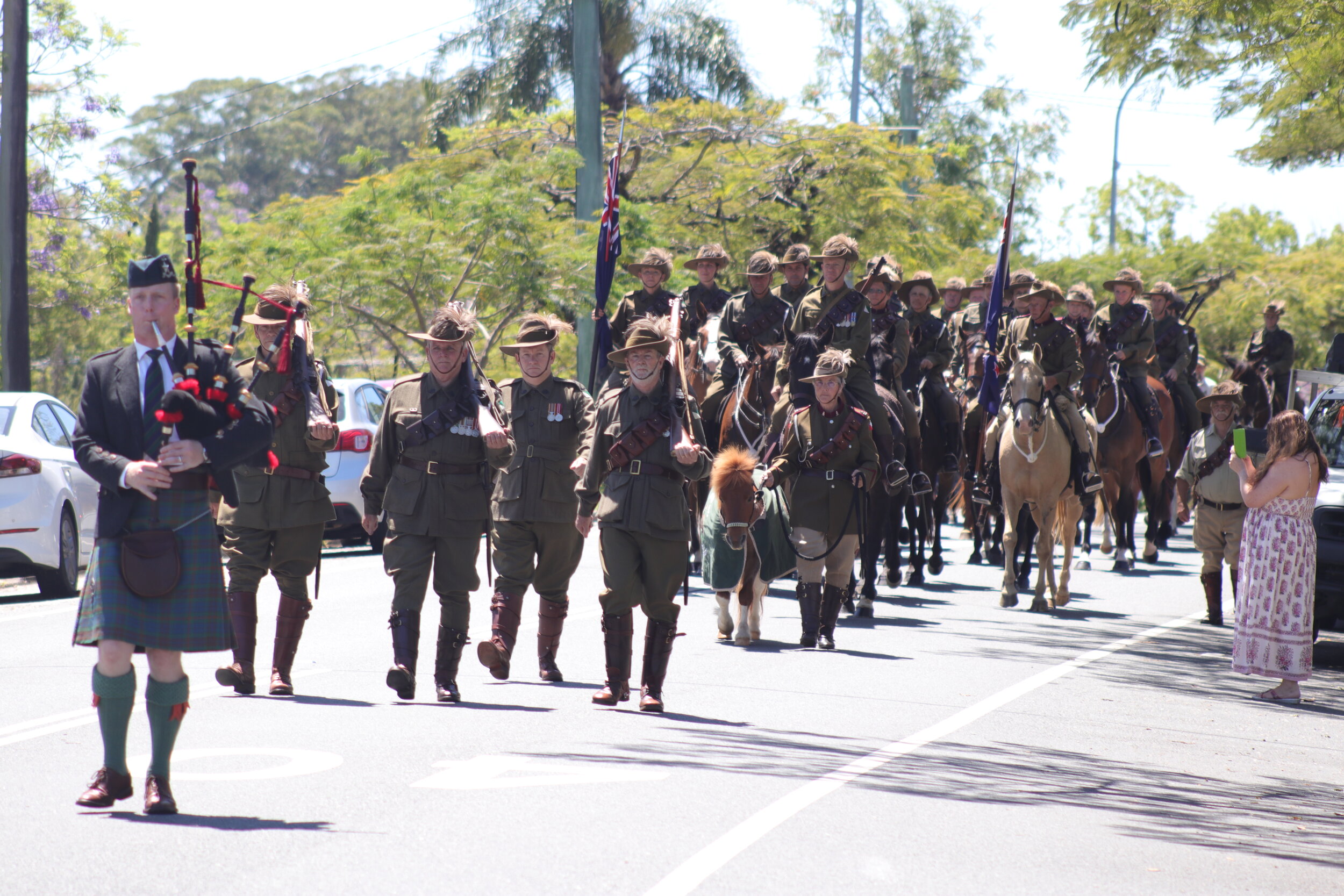 Joining the 2nd Light Horse Regiment Woombye Troop were the 5th Light Horse Regiment Gympie Troop, the 5th Light Horse Maleny Troop, the Cooroy and District historical Troop, Australian Army Veterinary Corps Memorial Troop, the Queensland Mounted Infantry Historical Troop, the Red Cross nurses, the RSL, veterans and current serving members of the defence force.