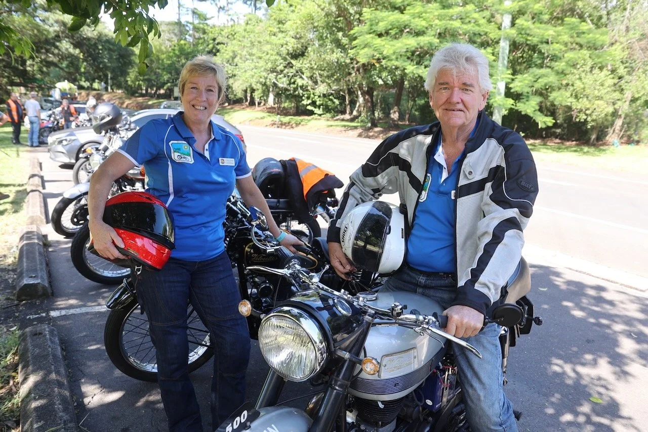 Sunshine Coast Historical Motorcycle Club Secretary Keith Canning and his wife Colleen, pictured just before one of the Club’s rides, are keen for the swap meet.