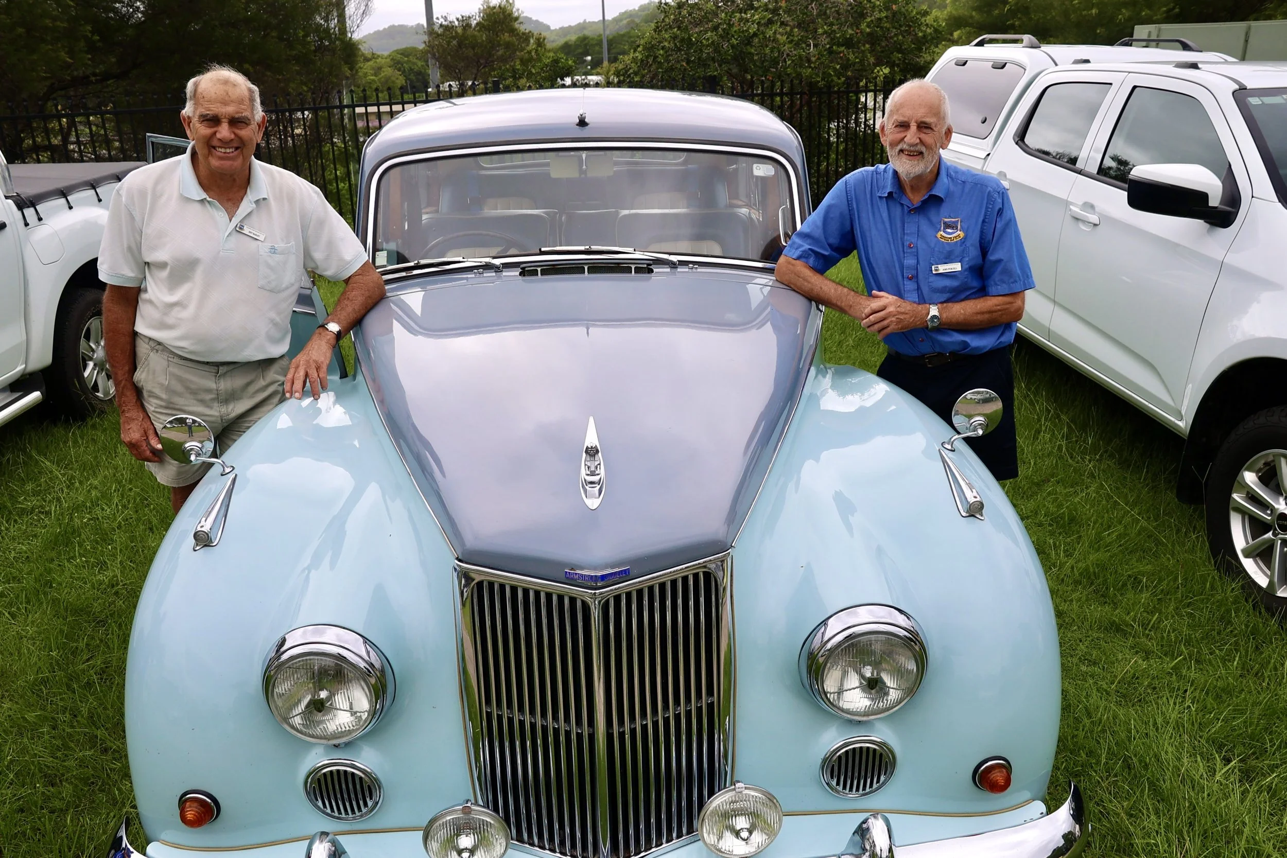 Vintage charm on wheels: President Kevin Bailey, left, and Secretary John Purcell with John’s 1959 Armstrong Siddeley Star Sapphire. New members are welcome, as are the public, at the February 25 Open Day and Display.