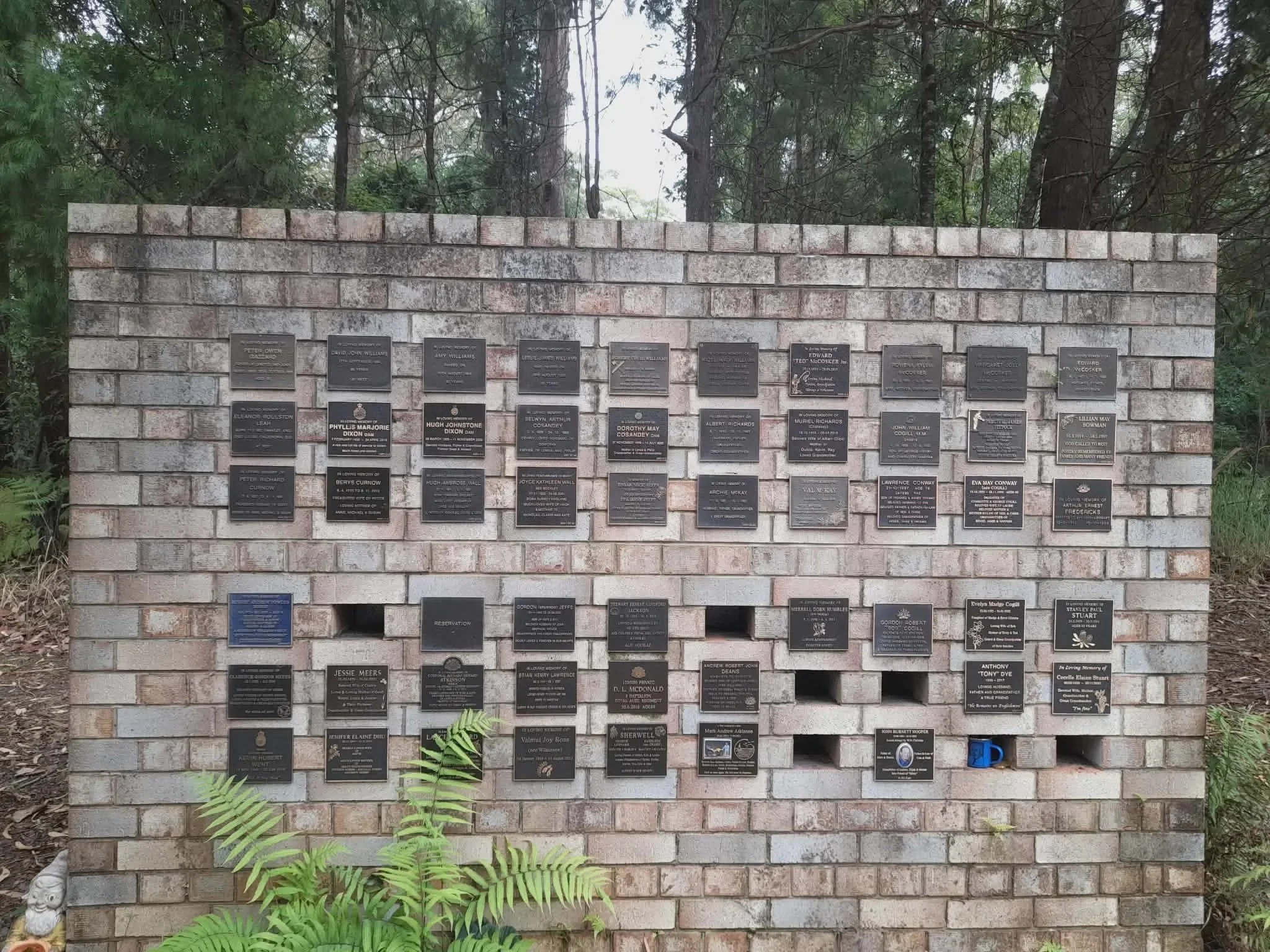 Her primary concerns centre on the cremation niche wall, which she describes as weathered and unprotected. She is calling for: A thorough pressure clean of the brickwork and bronze plaques; A heritage-style gable-roofed shelter to protect the wall; and Flowering shrubs along the boundary to block dust from the unsealed road.