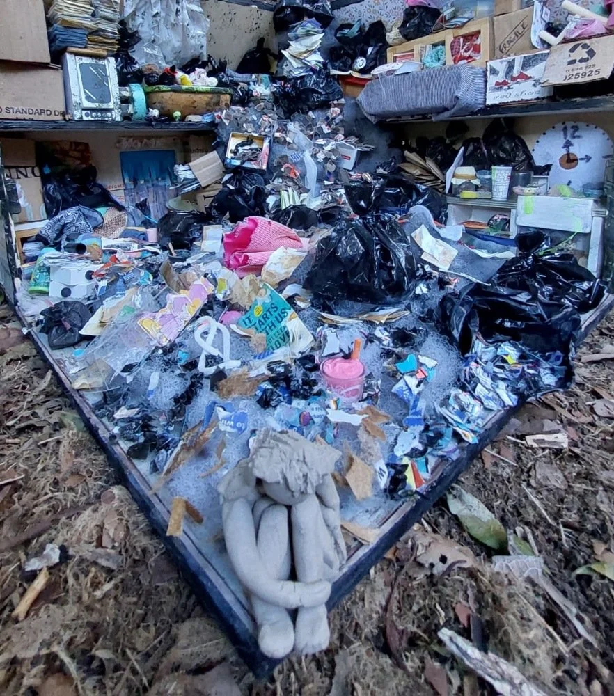 The exhibition delves into the often hidden emotional and physical turmoil experienced by children raised in hoarding environments.
