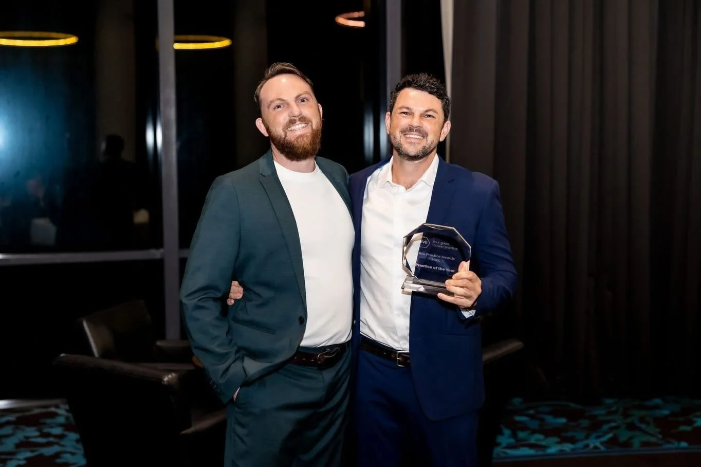 Elite Foot Care Directors, Will O’Hara and Jay Lewis at the Hive Allied Health Practice awards on the Gold Coast.