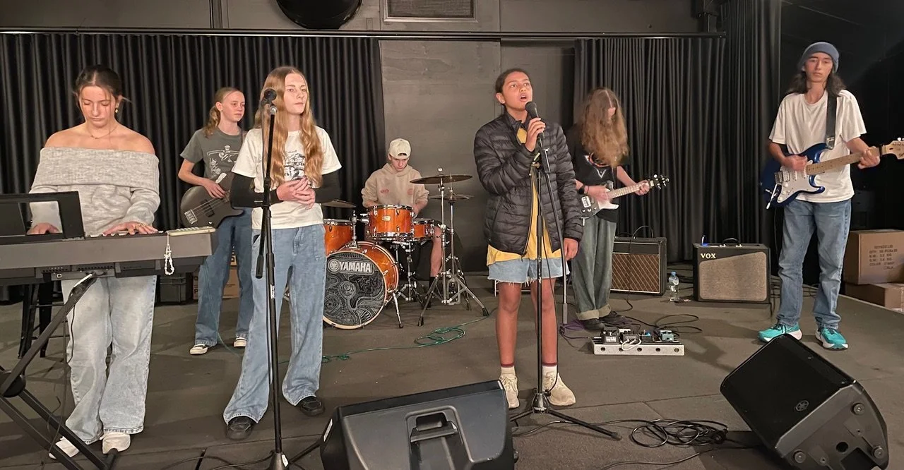These are all professional working musicians: Mark Moroney guitar + voice; Alys Ffion voice; Jazzella Coogan voice; Brodie Graham guitar; Jarrod Tutbury keys; Rob Ewan bass; Brett Newman drums; Jimmy Halliday trumpet; Sive Hughes saxophone; and Zac Hurren Stage and Teen Band Mentor.