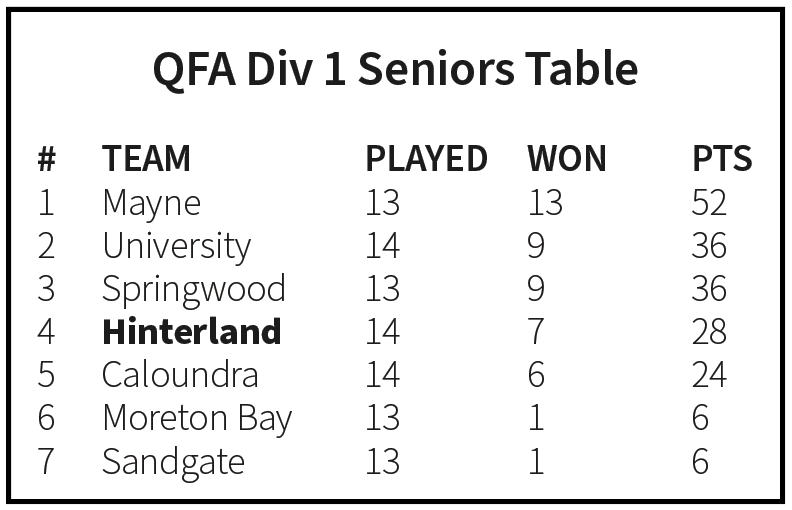 The Hinterland Blues are holding onto fourth spot on the QFA Division 1 Seniors ladder with just two matches remaining before finals.