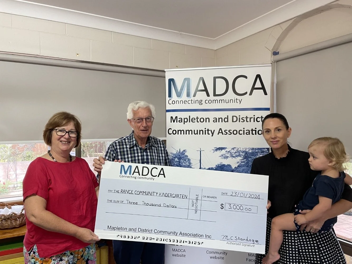 “The MADCA Community Grants Program was set up in 2023 to give back to the Community the funds raised by the Mapleton Country Market,” said MADCA President Max Standage. “The Mapleton Country Market is run under the auspices of MADCA and the whole community pitches in to support local initiatives. Giving to the Kindy nurtures the leaders of tomorrow.”