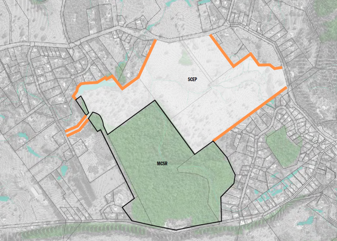 The proposed Ecological Park, shaded white, is larger than the area of the current Mary Cairncross Scenic Reserve, shaded green.