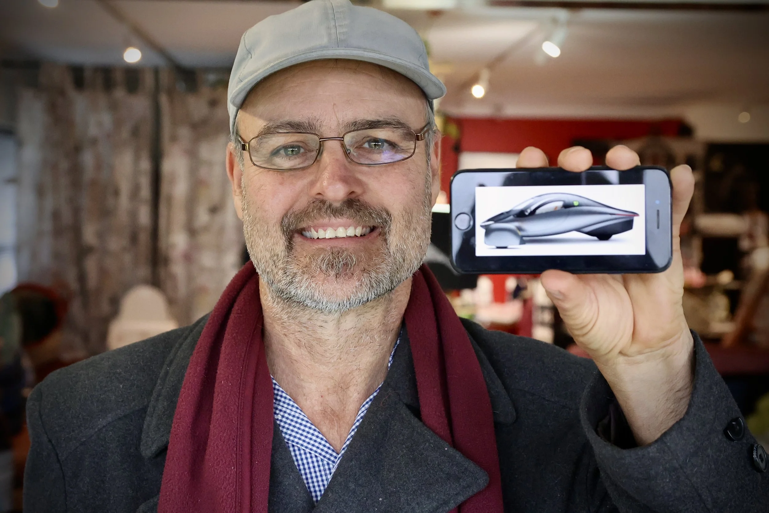 Andrew McLean holds up a pic of his dream car. What would a vehicle looks like if it prioritised efficient and aerodynamics? That was the question that Aptera asked. And this is the result.
