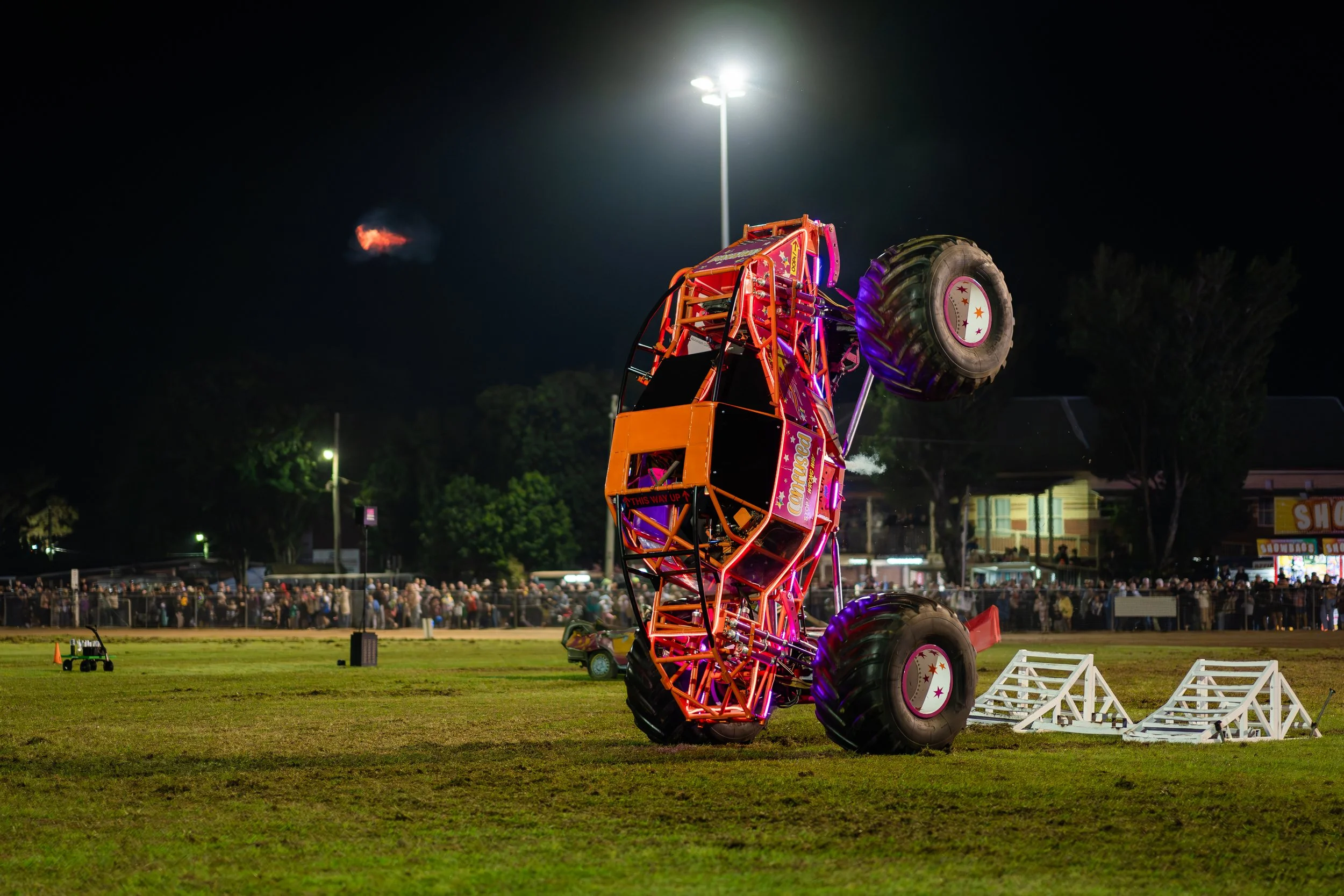 Crowds will be treated to wheel-standing monster trucks, rollover stunts, and jaw-dropping stunt acts, all backed by the roar of engines and the spectacle of fireworks.