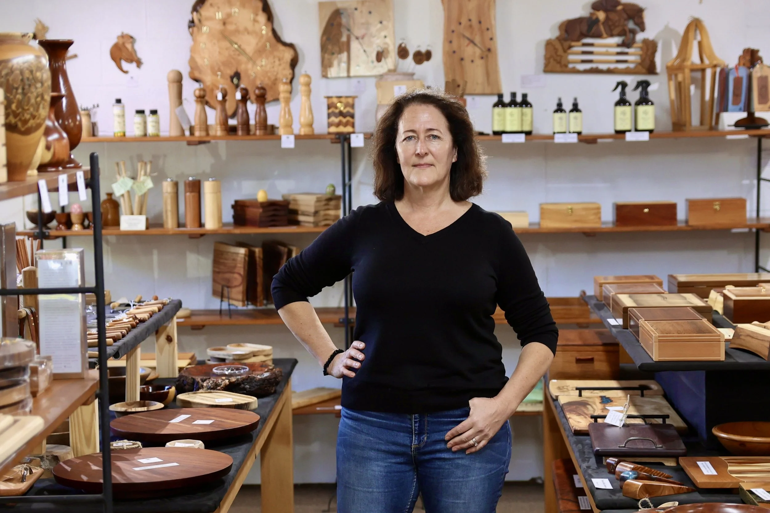 Montville Woods Gallery owner Arabella Lubbers says people are under pressure from cost-of-living issues.