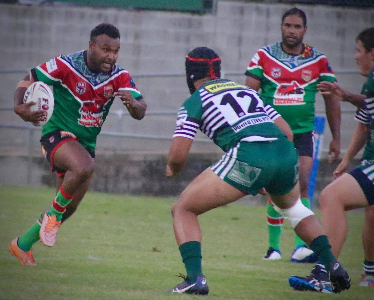 A successful last minute penalty conversion by Kye Sherry sealed the win after a great team effort by all players from both teams. Final score was Nambour 32 defeating Maroochydore 30.