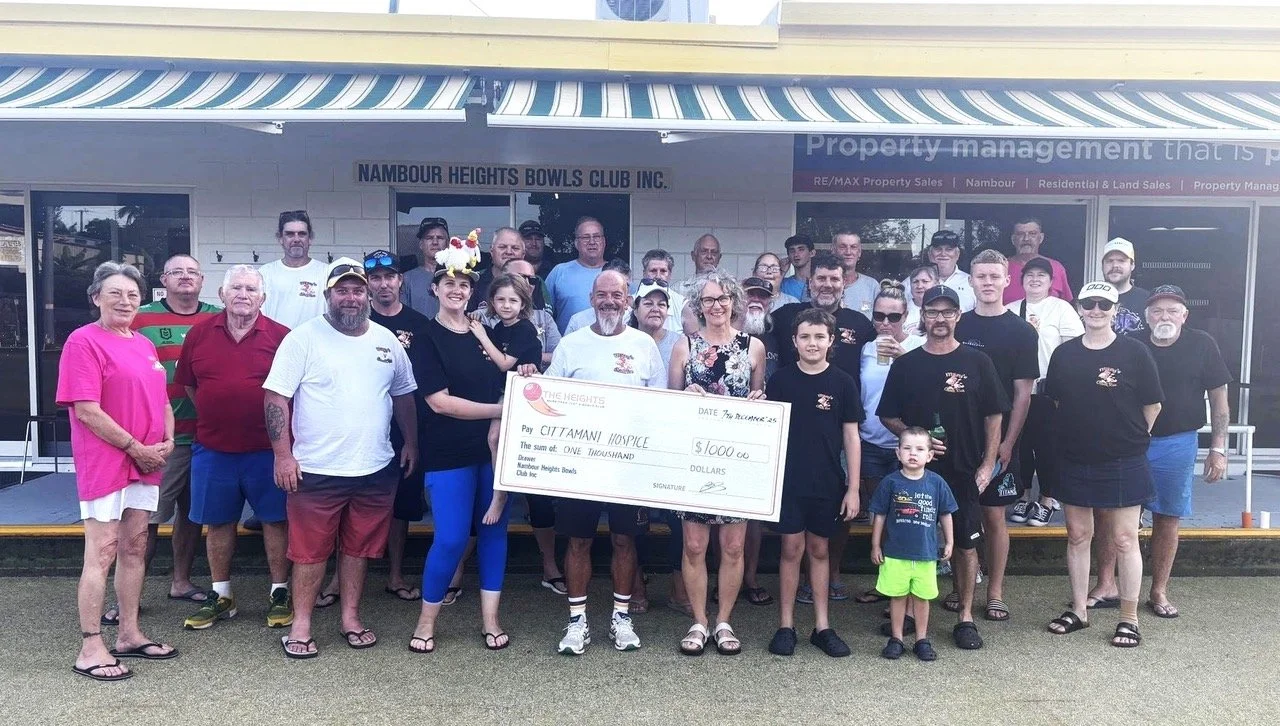 Nambour Heights Bowls Club has again backed one of the region’s most valued community services, donating proceeds from its weekly Sunday Arvo chook run to Cittamani Hospice.