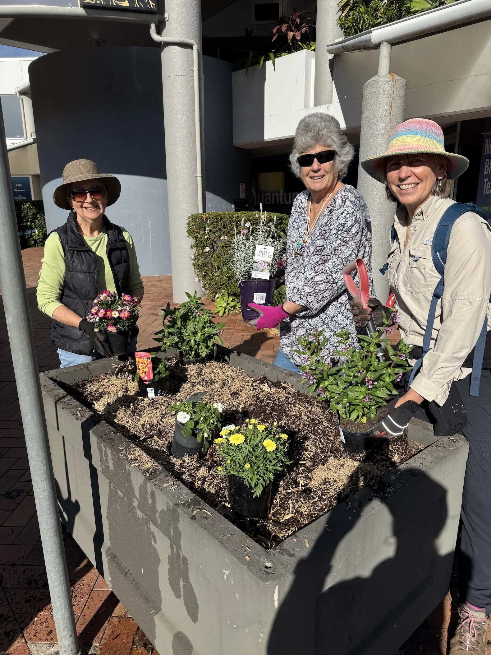 “It was a fabulous session this morning,” said volunteer Racheal Pascoe from Nambour Grown community gardens. “We gardened alongside our Mayor Rosanna Natoli and got the 12 concrete planter boxes refreshed with colourful springtime plants. They look great. Thanks to the store manager Damien at Mitre 10 for donating the bags of compost. Thank you to Ryan and Ally from the Nambour Produce Agency for donating sugar cane mulch. And special thanks to our council & Rosanna for paying for $1000 worth of plants to brighten our town.”
