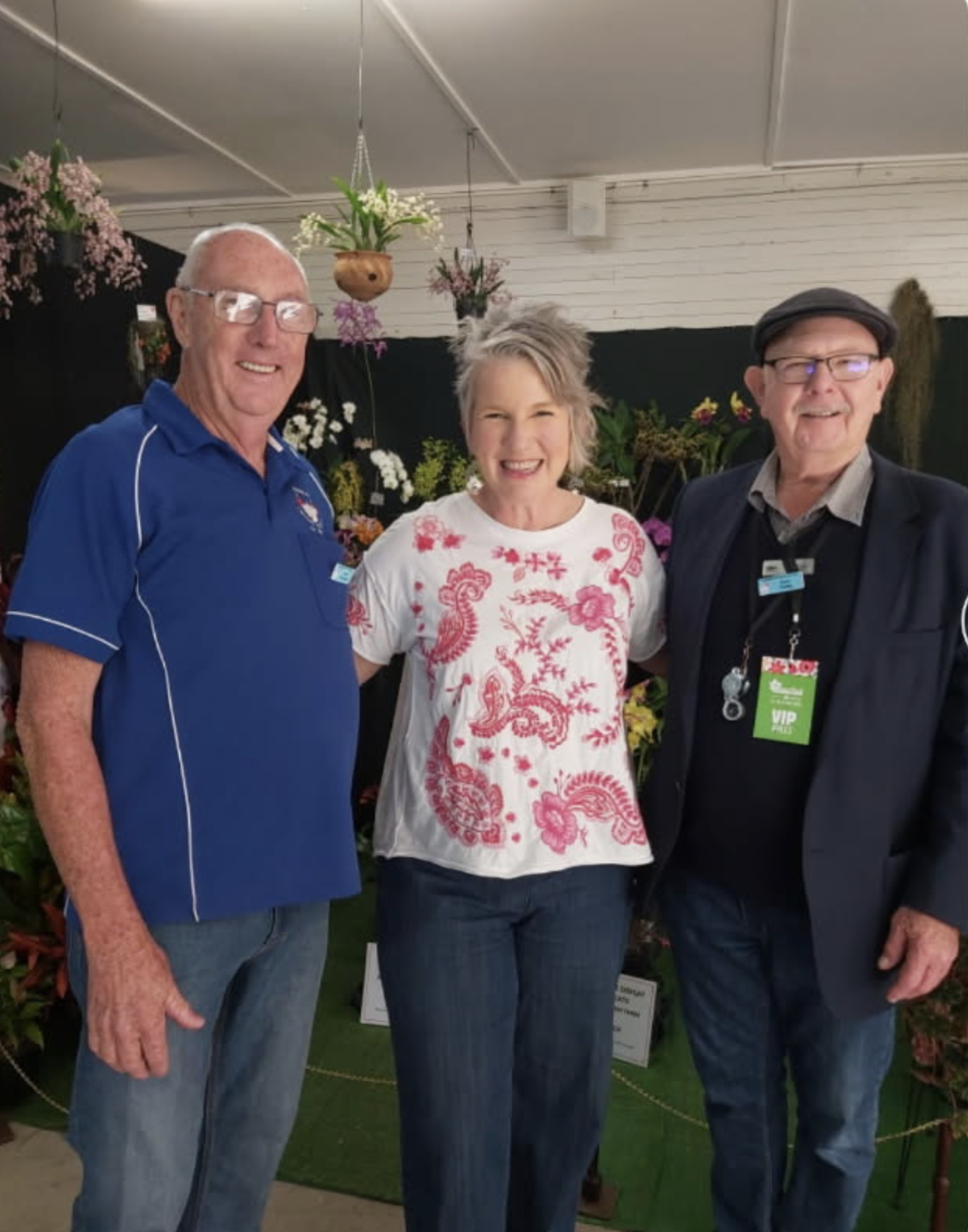 Cliff Alexander, Sophie Thomson and Peter Young at the Nambour Orchid Society display during the 2025 Nambour Garden Show.