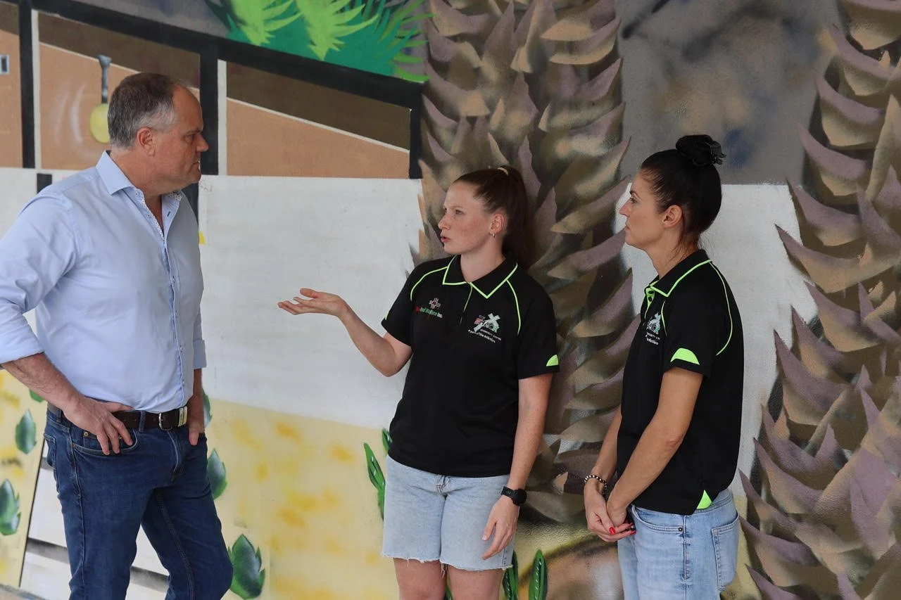 Federal Member for Fairfax Ted O’Brien MP with The Shack spokesperson Imogene Nguyen and volunteer, Sadie Kimbal.