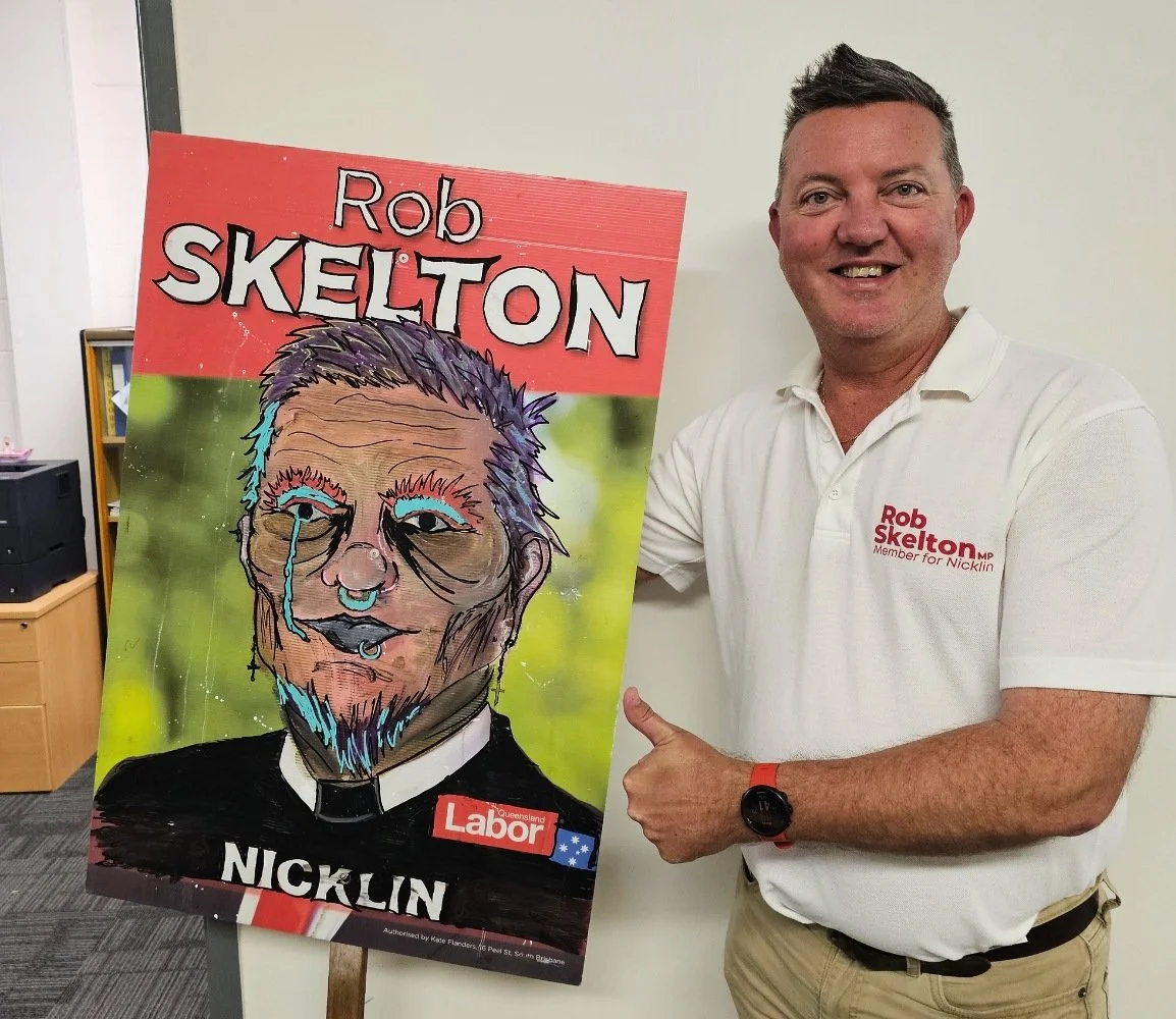 Nicklin residents are being encouraged to channel their artistic talents in a new competition launched by local MP Rob Skelton. The “Nicklin Corflute Competition” invites community members to transform one of Mr Skelton’s political signs into a unique work of art.