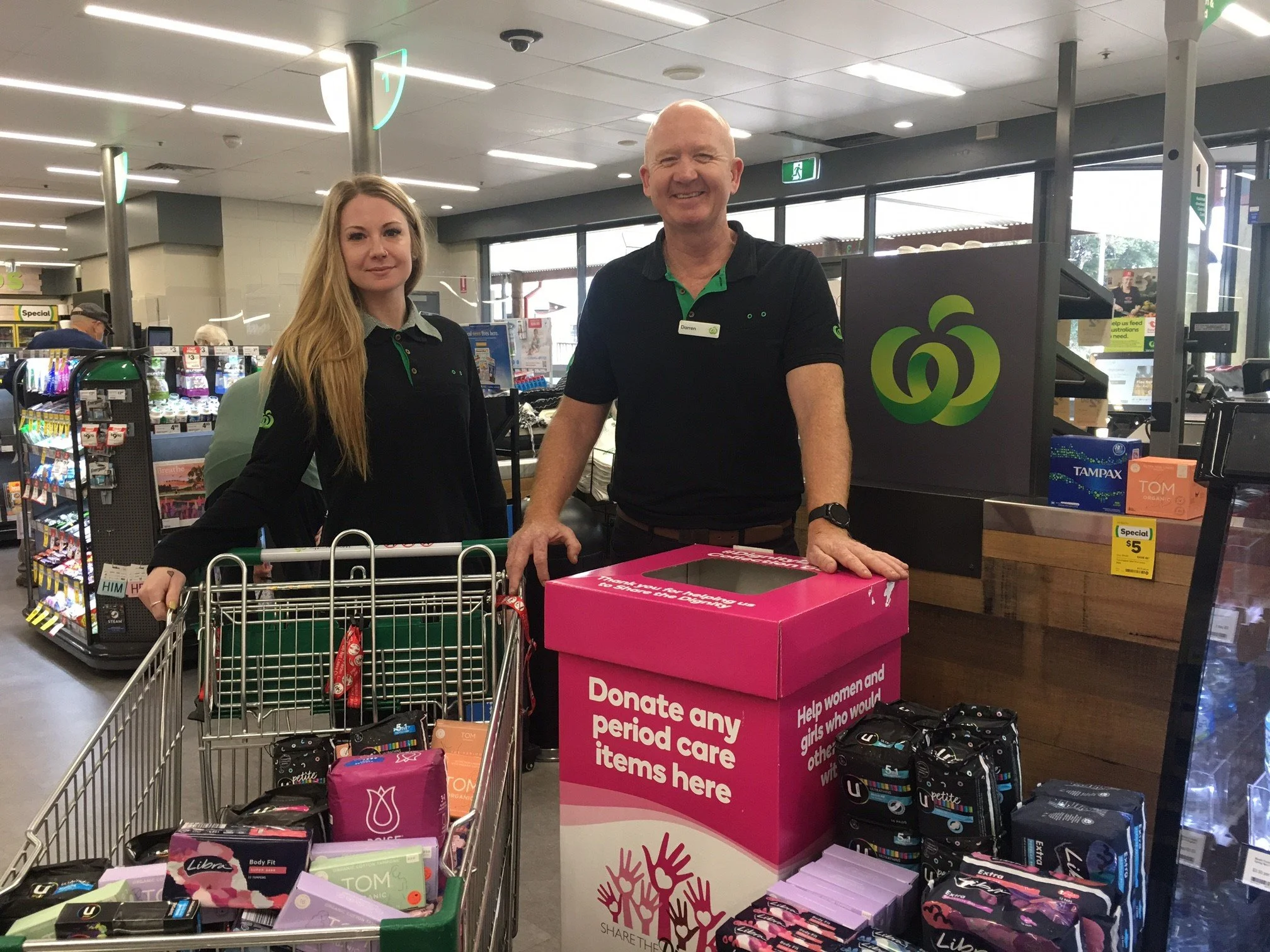 Pink collection boxes will also be available in Woolworths supermarkets across Australia for the donation of period products.