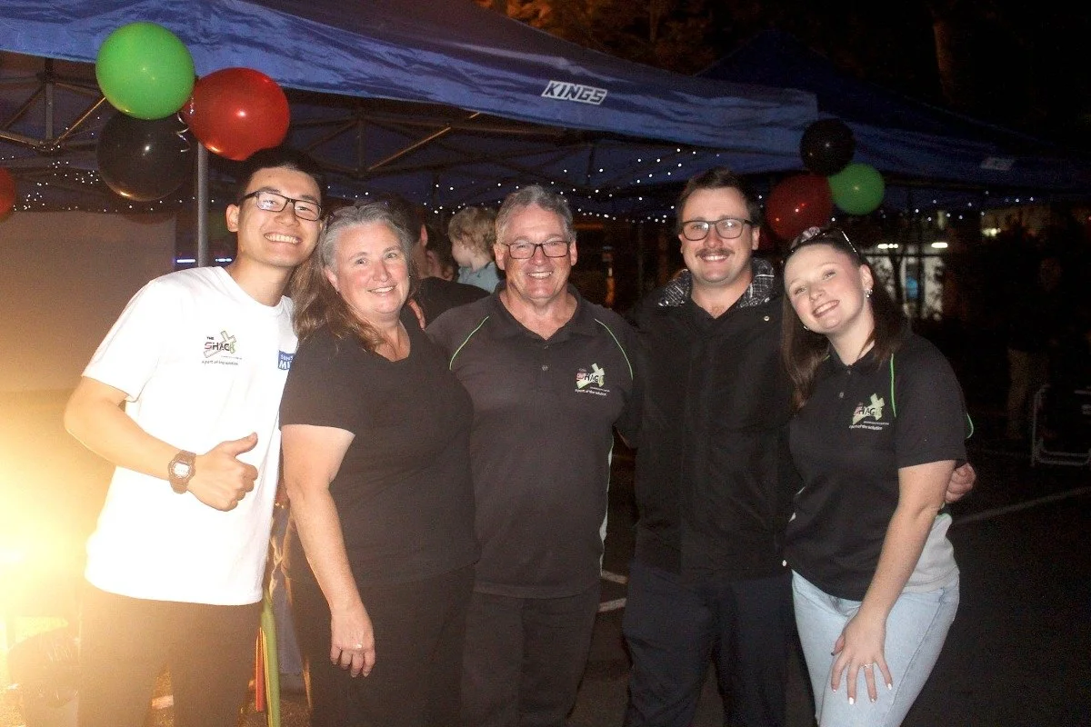 Pictured at the Shack’s 21st Birthday celebrations are Steven Gordon, Donna Dowler, Dale Dowler, Joel Dowler & Imogene Dowler ... “After 19 years, we’re stronger and more passionate than ever”. Steven is Imogene’s fiancé.
