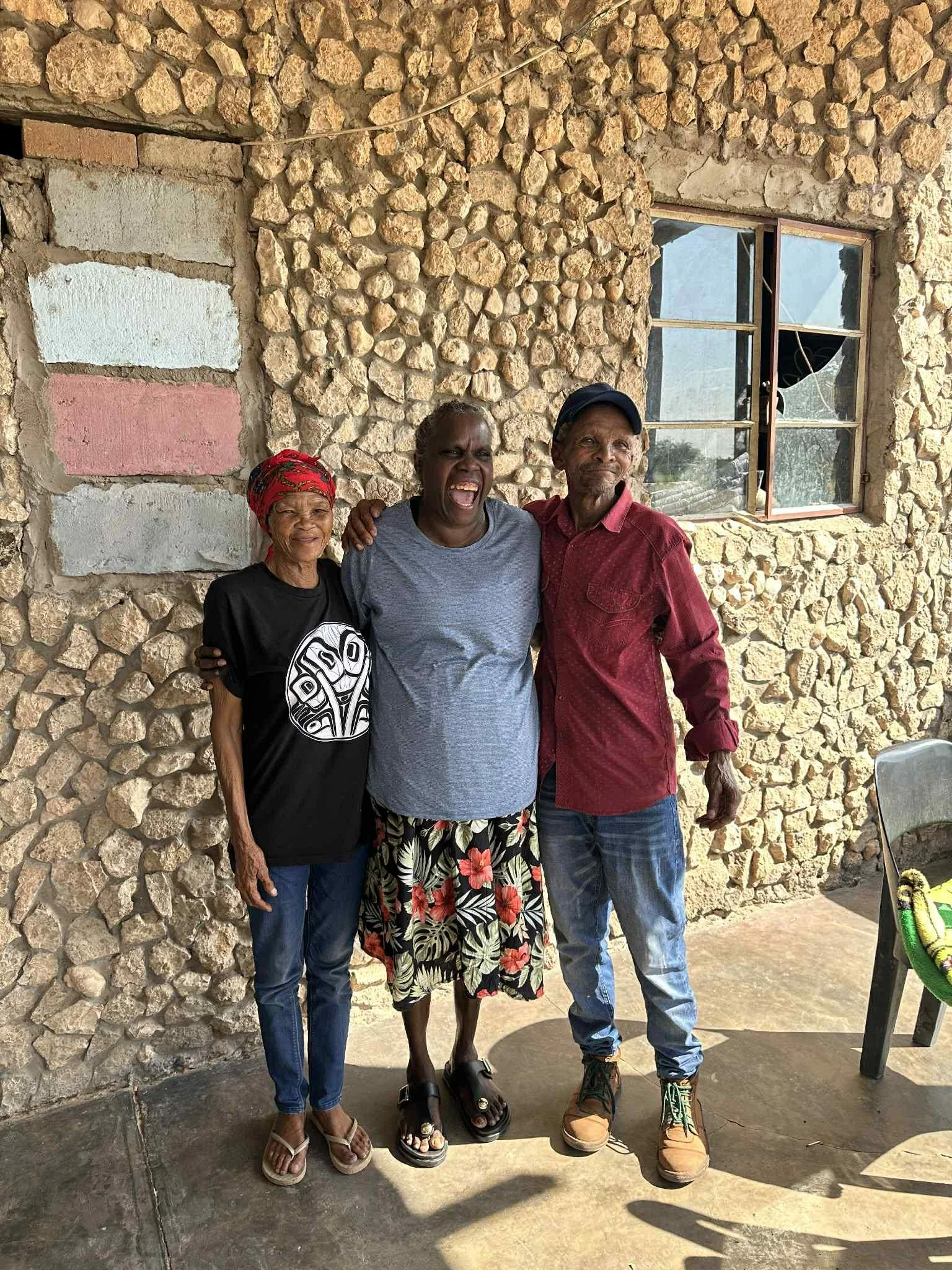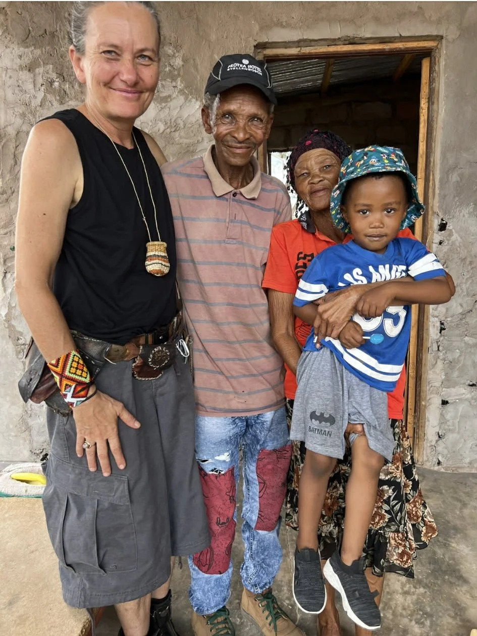 South Africa’s Khomani San Bushman elders Lydia Kruiper and her husband Izak with Australian First Nations elder Rosemary Nabulwadd during Rosemary’s visit to the Kalahari. Image courtesy of Rene Bahloo.